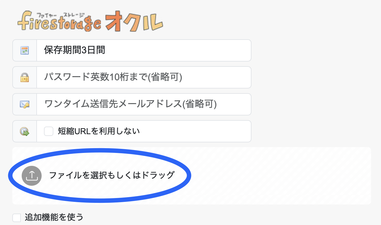 ※上の「保存期間◯日間」、「パスワード」、「ワンタイム送信先メールアドレス」、「短縮URL」は無視されて結構です(心配でしたらパスワードは作成しても構いませんが、すでに複雑な文字列がパスワードを兼ねており、作成する必要はないと思われます)。