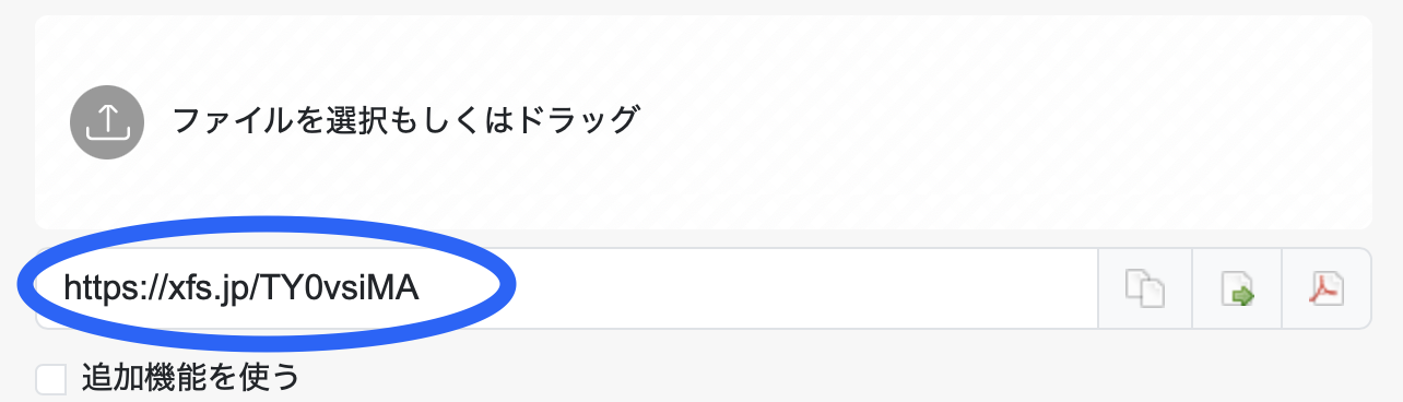 ③アップロードが終わると、瞬時に下段にURL(文字列)が表示されます。このURLを「更新希望内容欄」にコピー&ペーストください(このURLよりファイルをダウンロードできます)。